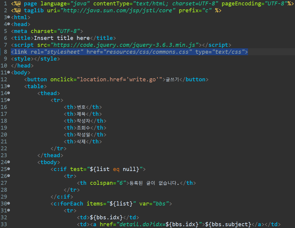적용 css 링크 태그를 jsp 에 삽입