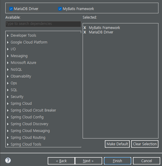 MairaDB driver , MyBatis Framework 체크해주기